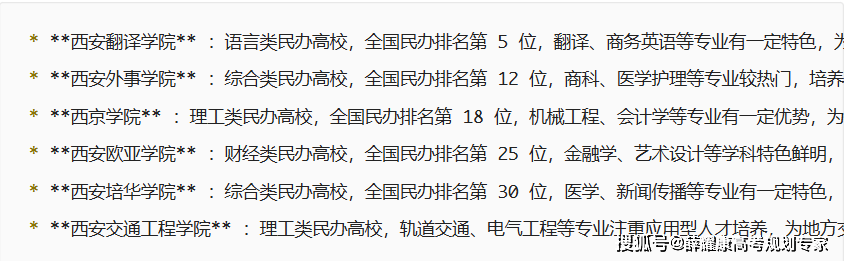 西安理工大学、西安邮电大学、西北大学、西安建建科技大学、陕西科技大学、西安科技大学、西安外国语大学。纺织工程、服拆设想等学科有必然劣势,对专业要求不高,实力强且合作小。因为2019年是二三本归并的第一年!